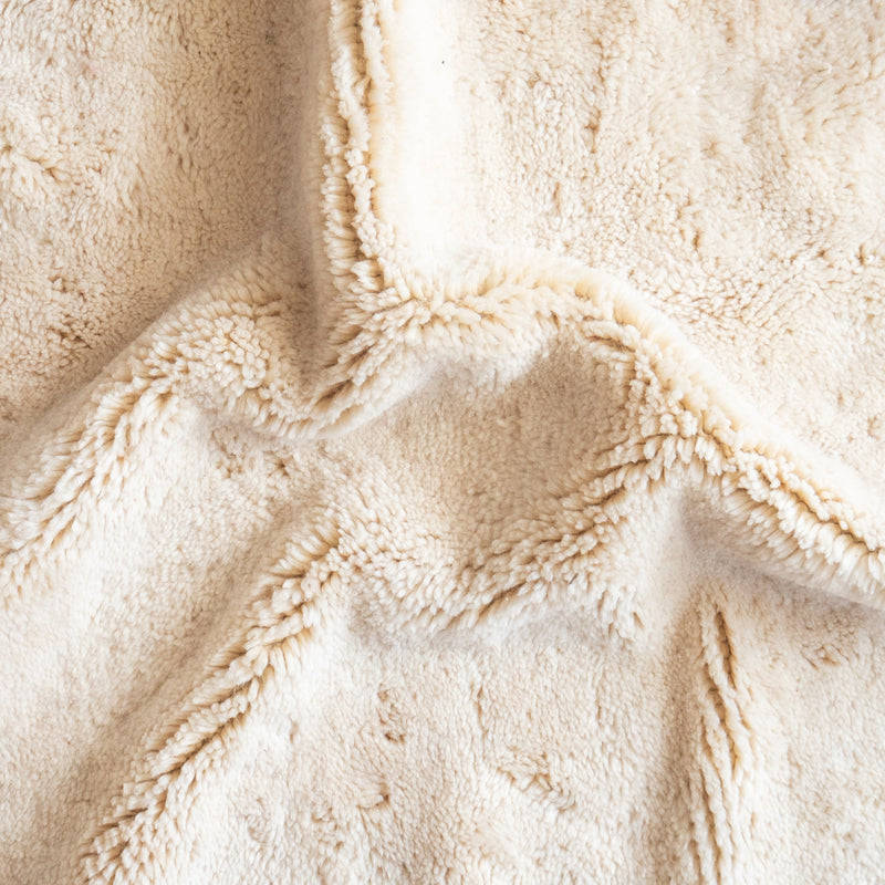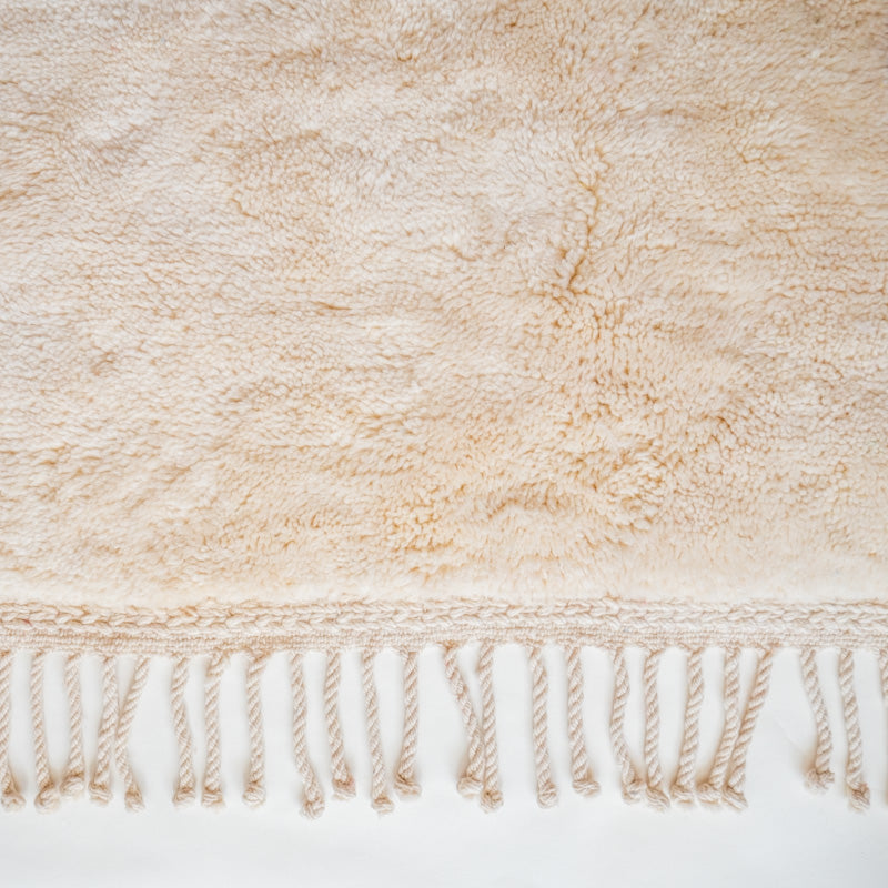 In traditional Moroccan rugs, tassels adorn just one side. Tassel lengths typically range from 4" to 6" / 10 cm to 20 cm, depending on the size you choose for your rug. Here's a peek at these charming tassel details.
