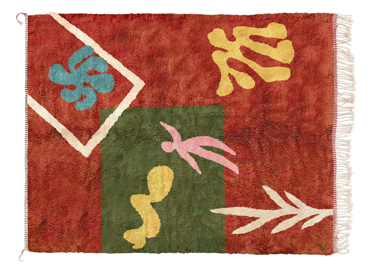 Abbiamo sempre nutrito una profonda ammirazione per i grandi artisti delle epoche passate. I loro dipinti hanno un fascino incantevole, catturando la nostra attenzione e invitandoci a esplorare le complessità all'interno, svelando gradualmente i concetti sottostanti. In qualche modo ci colpisce che se a questi maestri fosse stata concessa la possibilità di materializzare le loro riflessioni sotto forma di tappeti marocchini, avrebbero senza dubbio colto al volo l'opportunità. Anche se forse non rivendichiamo la grandezza dei secoli, i venti dell'ispirazione ci hanno sussurrato e semplicemente non abbiamo potuto resistere. Abbiamo realizzato con amore una collezione di tappeti che danza al ritmo di artisti di fama mondiale e dei loro affascinanti capolavori. Saluta Henri, Wassily, Paul e, naturalmente, il nostro caro Pablo. Sono tutti qui, cospargendo un tocco di polvere di stelle artistica nelle fibre stesse che abbelliranno i tuoi pavimenti.